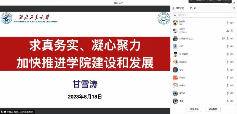 甘雪涛结合主题教育学习体会,立足学院现状,分析学院特色优势,深挖问题不足,围绕中心工作的开展和推动,深刻系统地做出竞争分析,提出学院建设和发展的新举措。