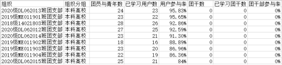 与此同时,部分团支部学习覆盖率比较低,2017级的1、2、3、4班,2018级的2班和4班学习率均低于30%,极大地拖了学院和学校的后腿,在此对以上团支部提出批评,并要求团支书进行学习整改,希望这些团支部在之后的学习中能够提高学习积极性,按时完成学习任务。