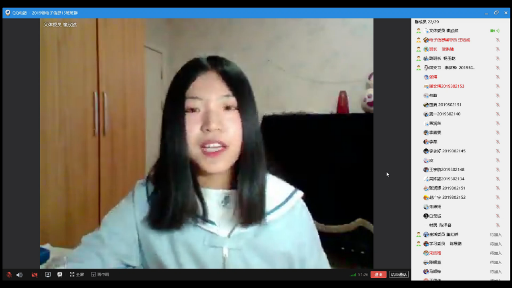 值此疫情期间,为了解同学们居家生活,学习情况及心理状态,让同学们在疫情期间调节好心态,微电子学院2019级DL061915小班于3月27日在腾讯QQ平台举办第二次线上心理班会。本次班会由团支书李彦桦主持。