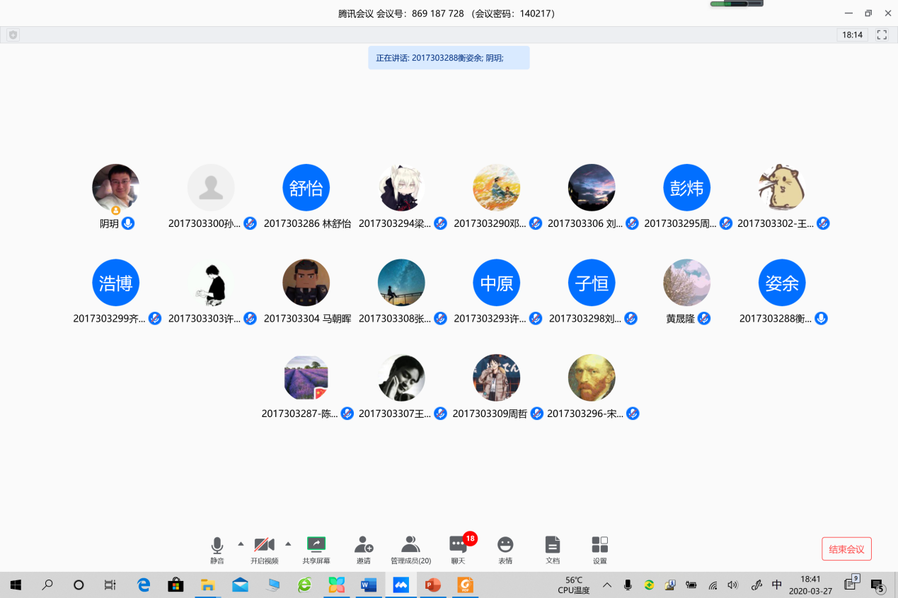 疫情防控尽责担当,立德树人初心不改。抗疫是“战场”,也是“课堂”。为了打好这场抗击疫情的人民战争、总体战、阻击战,微电子学院采取“停课不停学,线上云学习”方式保证教学进度的同时,不断强化学生管理工作,坚持抓班风促学风,3月23日至27日,学院组织2017级本科班在云端分别开展了战“疫”系列主题班会,各小班班主任与同学们就疫情防控、思想状态、学习方法、学业分析等方面进行了深入交流。