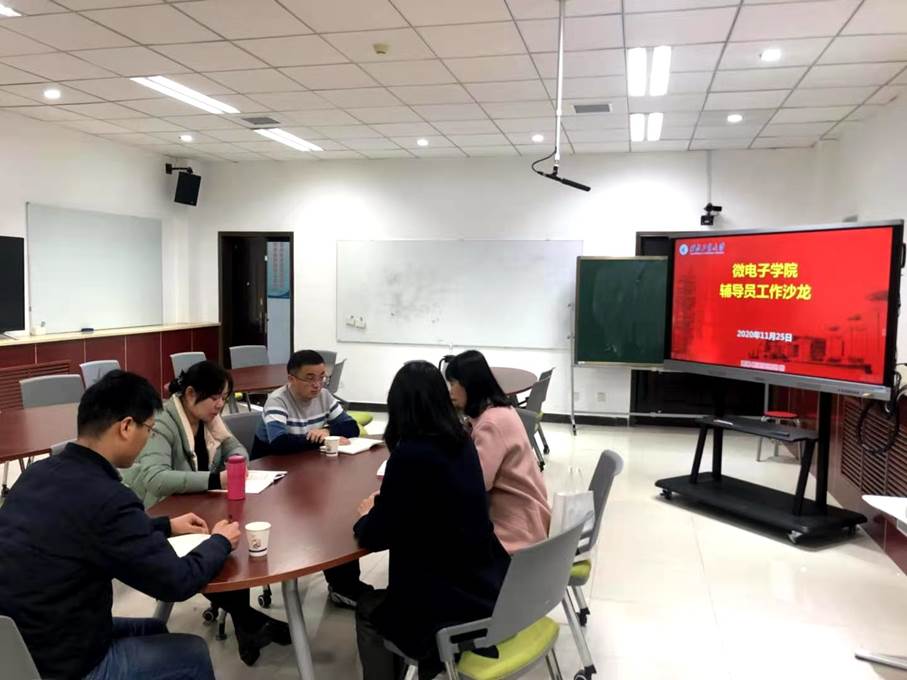 为进一步加强辅导员队伍建设,促进辅导员学生工作管理水平提升,2020年11月25日,微电子学院举办了辅导员工作沙龙活动,特邀计算机学院辅导员高云和电子信息学院副教授高永胜与来院交流分享工作经验。学院党委副书记彭蓉、本科生辅导员李伟和研究生辅导员梁秋菊参加了本次活动。沙龙由彭蓉副书记主持。