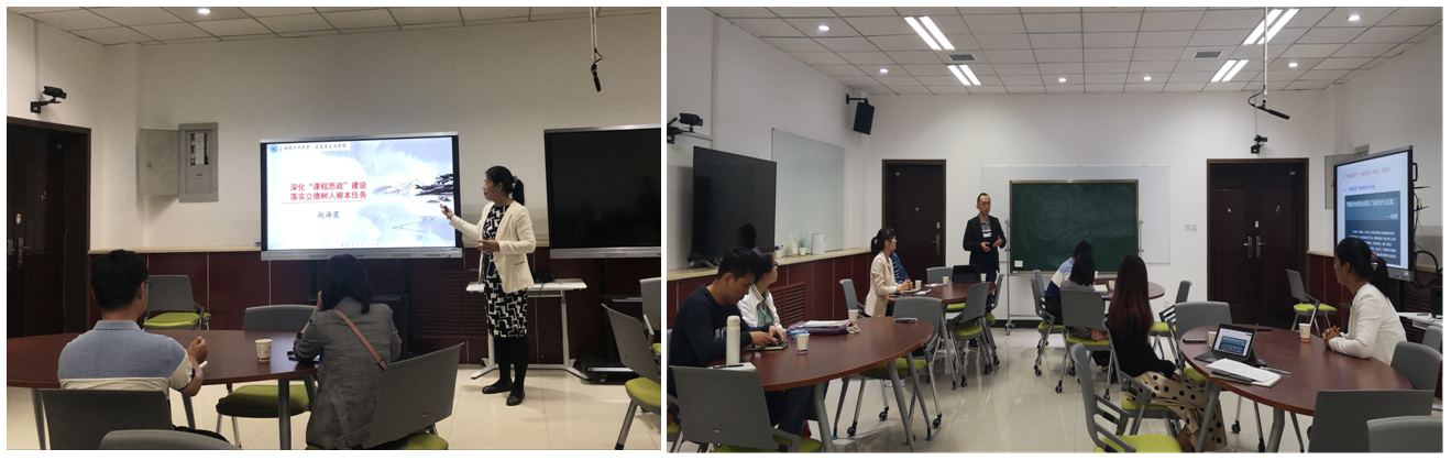 赵海霞副教授的讲座主题是“深化‘课程思政’建设,落实立德树人根本任务”。讲座开始,赵教授通过习近平总书记在全国高校思想政治工作会议上的讲话引入“课程思政”的背景,明确“课程思政”的三项基础性工作,即坚持办学正确政治方向,建设高素质教师队伍和形成高水平人才培养体系。接下来,赵教授带领教师们从理念、方式方法和实施三个方面深入学习了“课程思政”的内涵,并结合新时期人才培养的目标和理念,提出高校提高人才培养质量的关键在于教师,强调要为人师表,做“四有”好老师,通过自己言行,在教学、科研、学术责任、师德师风等方面对学生起带头作用。最后,赵教授通过具体的教学实例和参会的教师们一起探讨了在思想政治教育视角下,专业课教师应如何进行“课程思政”的规划与设计。