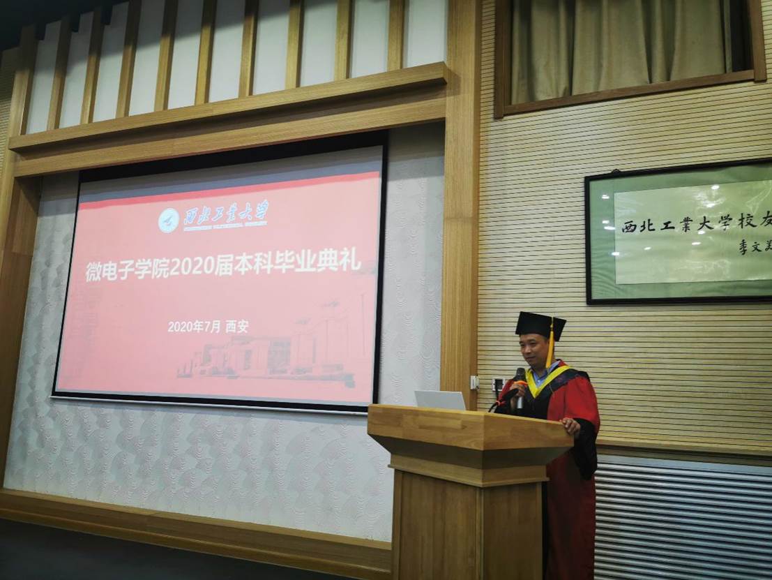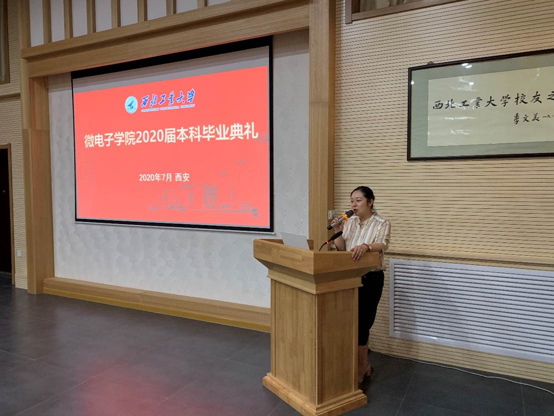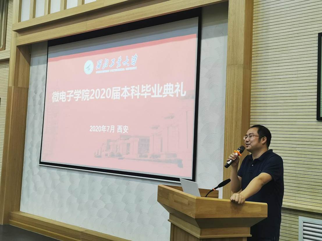 微电子学院2020届本科毕业典礼暨学位授予仪式在友谊校区阶二会议厅举行,祝贺全体微电子本科毕业生圆满完成学业任务,获得学士学位。学院副院长王少熙,党委副书记彭蓉,教师代表马彦昭、毕业班辅导员阴玥和全体本科毕业生参加毕业典礼,辅导员阴玥主持仪式现场。