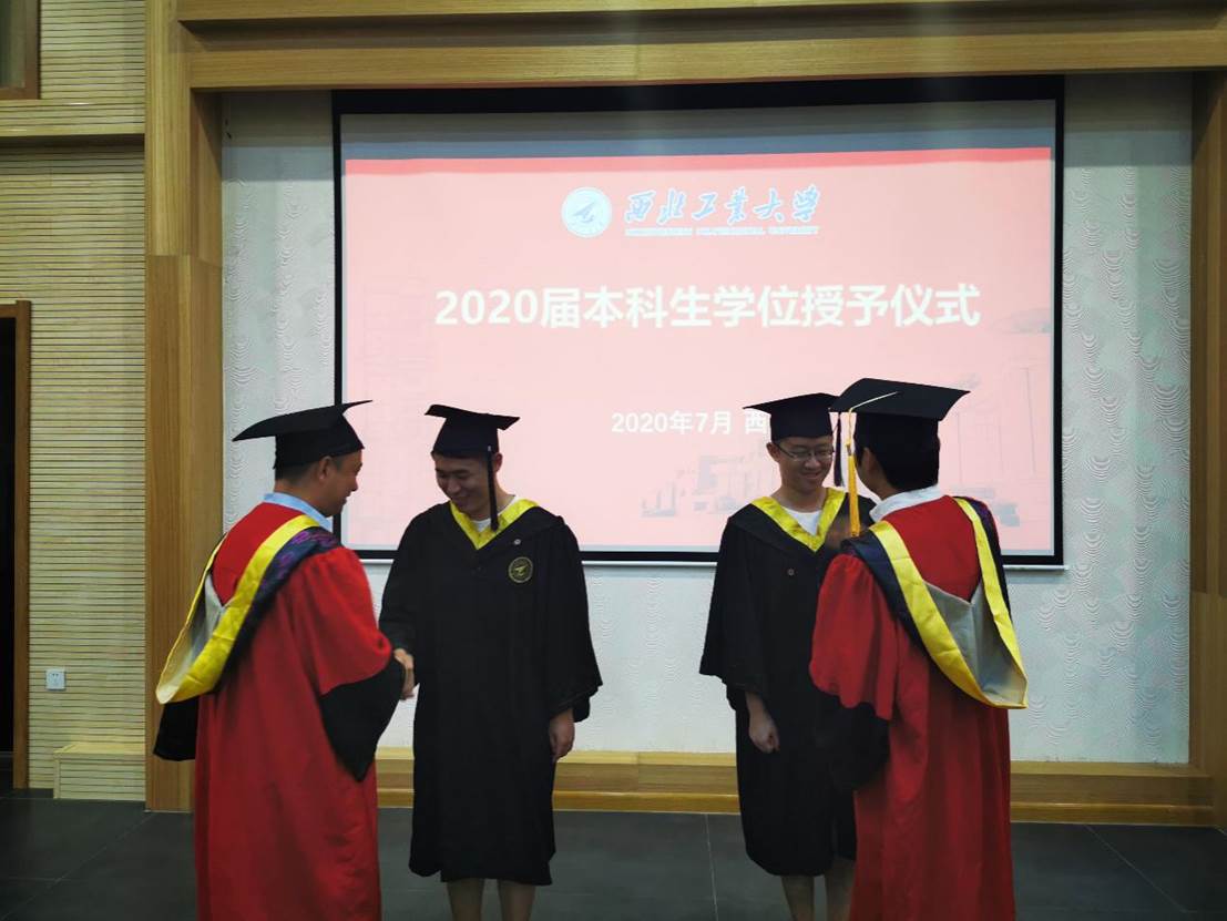 最后,毕业生们依次上台接受王少熙、马彦昭副教授拨穗礼,与学院领导和教师合影留念。辅导员阴玥代表学院向各位毕业生赠送毕业礼物,希望同学们带着学院的留念与祝福砥砺前行!同学们在毕业墙上留下了自己的名字,写下了对母校祝福。每个毕业生将深深为母校所铭记,毕生皆为工大人!