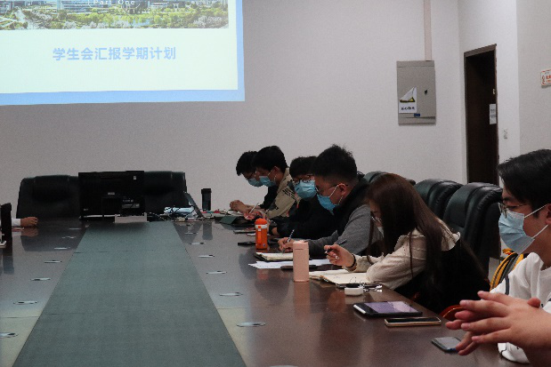 会议第一项,学生会主席团和各部门汇报本学期工作计划。针对目前学生会建设存在的问题以及学生实际需求,人资部、学实部、权益部、文体部、宣传部、新闻部分别提出要在加强学生会内部治理,增强年级间学习经验交流,畅通诉求反映渠道,开展多元化文体活动,提升自媒体平台传播能力,增加新闻宣传原创内容等方面下功夫。