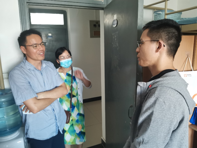 学院老师深入每个新生宿舍,交流入学和入校感受,询问实际困难和需求,征求意见建议,同时对新生们提出了殷切希望和具体要求。甘雪涛书记向同学们分享了自己的大学时光和切身感悟,指出同学们要及时树立远大理想和大学目标,瞄准定位、打好基础、努力深造,时刻保持学习、生活良好规律,共同营造积极向上的班风、舍风,一起提高进步。