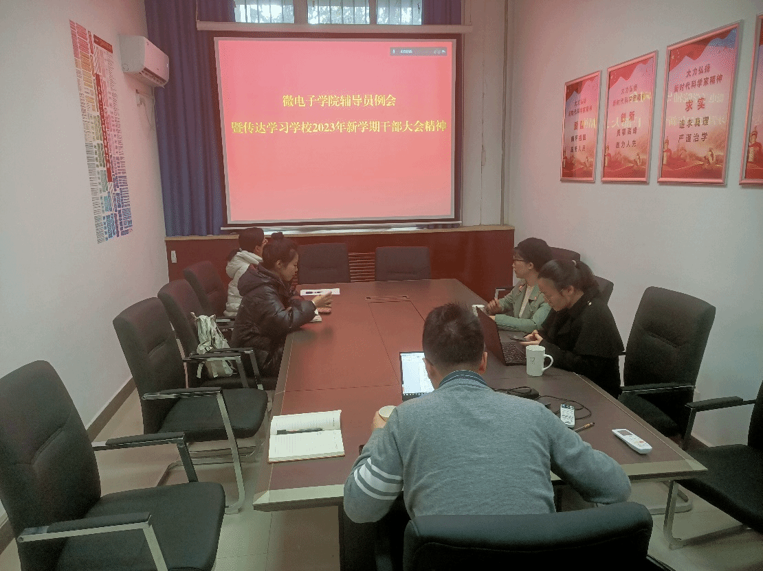 3月1日,微电子学院召开辅导员例会暨传达学习学校2023年新学期干部大会精神会议。会议由学院党委副书记余鹏主持,采用线上线下相结合的方式进行。