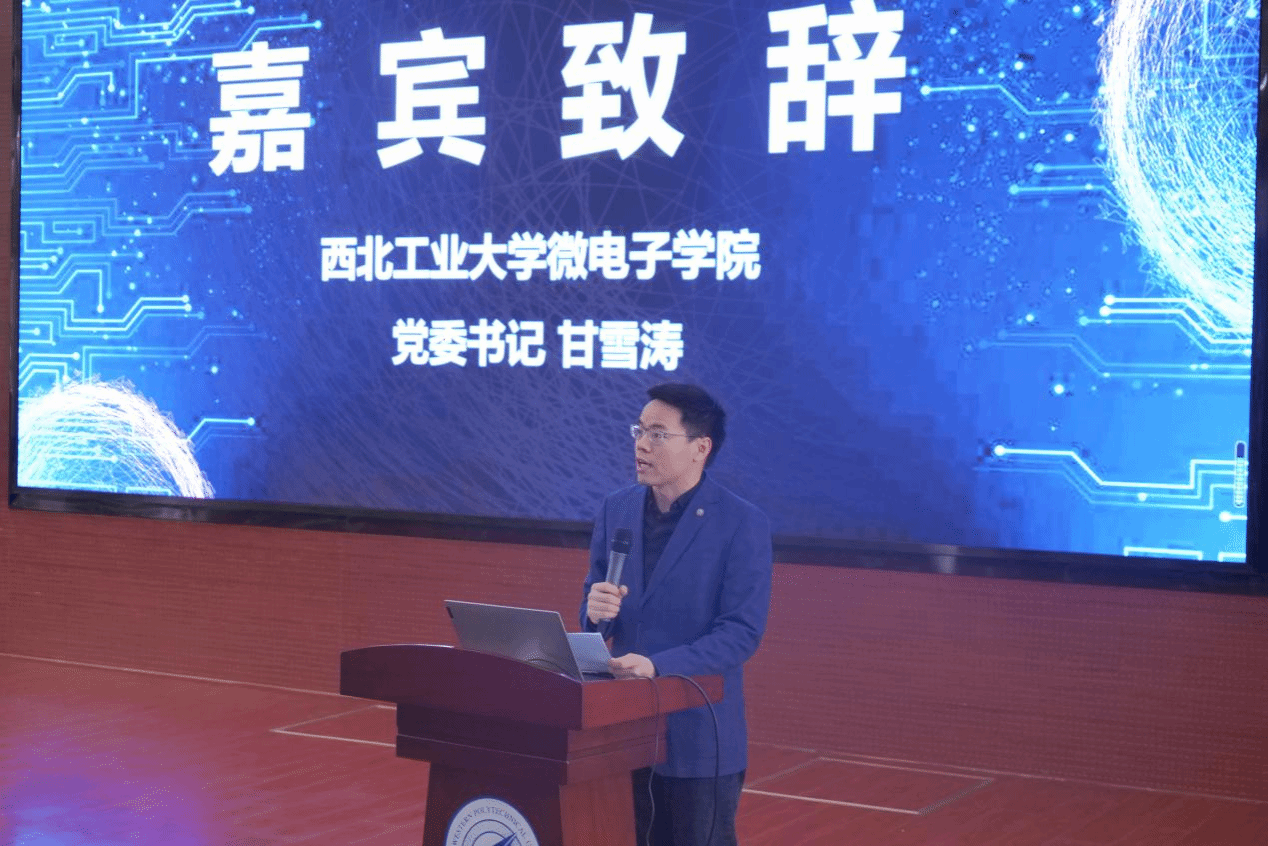 首先,甘雪涛代表学院致欢迎词。他表示,第七届全国大学生集成电路创新创业大赛西北赛区在我校举办,将为我校助力我国集成电路领域科技自立自强和高水平复合型人才培养起到积极的促进作用。