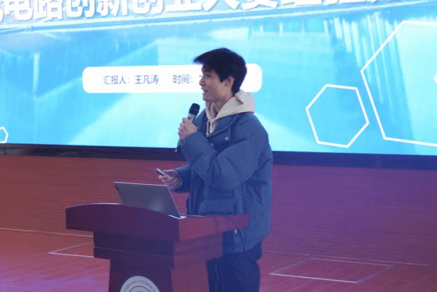 最后,王辉做了题为《同“芯”协力,“职”向未来》的主题演讲,分析了当前和未来行业形势,提出了学生职业发展规划的建议。微电子学院教师徐文涛、学生王凡涛分别代表往届参赛优秀指导教师、获奖学生分享了参赛经验。同时,与会师生还进行了现场提问和咨询,领导、专家们进行了细致、耐心地解答。