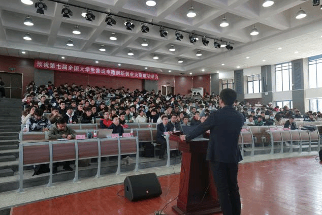 随后,陈黎介绍了大赛情况。他从历届赛事规模及影响力、分赛区决赛与产学活动以及第七届集创赛时间安排等进行了详细介绍,并给参赛学生提供了一些宝贵的建议,希望学生们能够明确参赛目的,合理安排整个参赛流程,充分利用赛事资源,拓展行业视野。