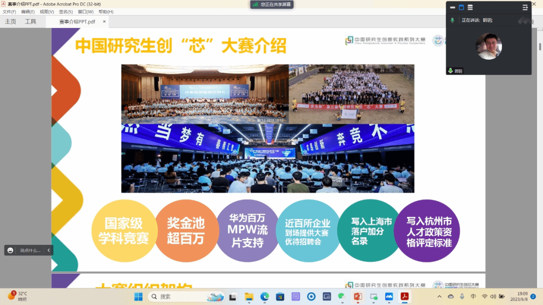 会议伊始,主持人阴玥老师对大赛基本情况做了详细介绍。大赛作为国家级竞赛,拥有超过百万元的奖金池,并且由华为技术有限公司提供百万MPW流片支持,同时大赛获奖同学可享受上海市落户加分和杭州市D类人才认定等优厚政策,极具吸引力,届时会有近百所集成电路领域企业到场提供大赛优待招聘会。阴玥老师对本次大赛日程安排也进行了详细讲解,并鼓励同学们积极参加比赛,展示自己的创新能力和实践水平。