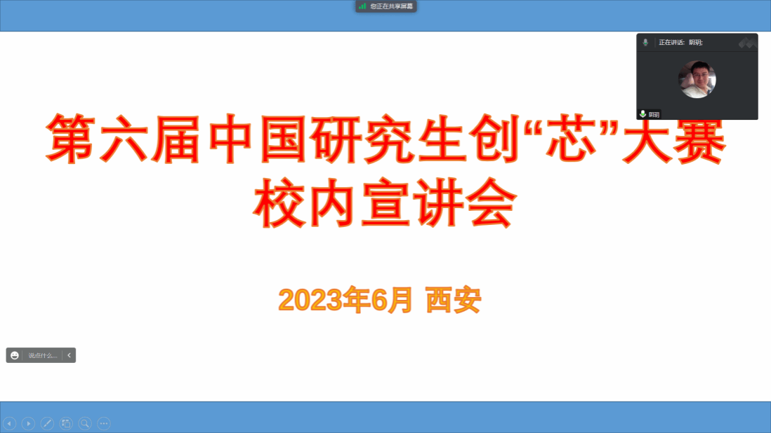 微电子学院举办第六届中国研究生创“芯”大赛(以下简称“大赛”)校内宣讲会。会议由微电子学院院长助理阴玥老师主持,邀请到了往届大赛优秀指导老师、微电子学院集成电路系主任马彦昭老师和往届大赛多次获奖的孙宇飞博士向同学宣讲大赛的相关情况和参赛经验。