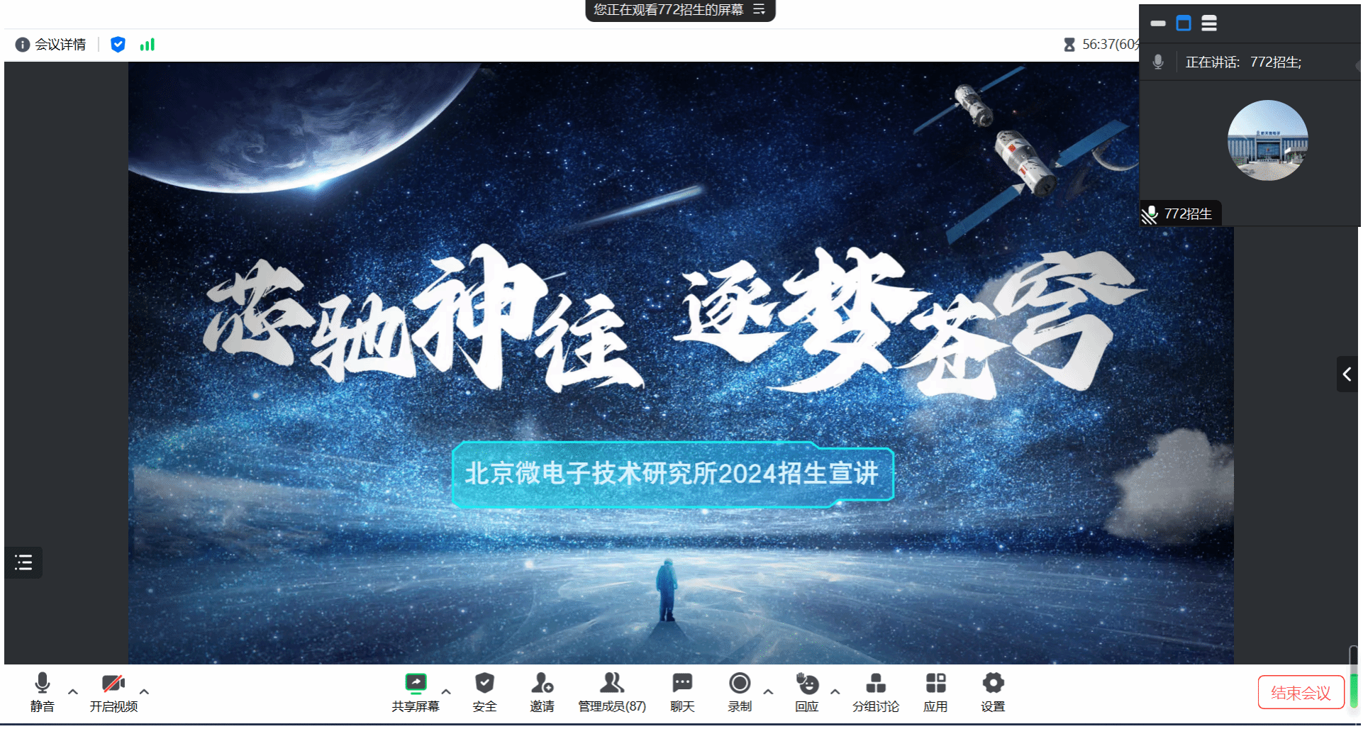 会上,刘澜副部长和王科迪主管分别介绍了771所、772所发展历史、科研方向、平台建设、文化环境等基本情况,重点介绍了研究所研究生招生、培养、待遇及未来发展等情况,向同学们很好地展示了研究所研究生培养相对于高校研究生培养的优势和特色。同时,会上还就同学们提出的问题进行了现场解答。