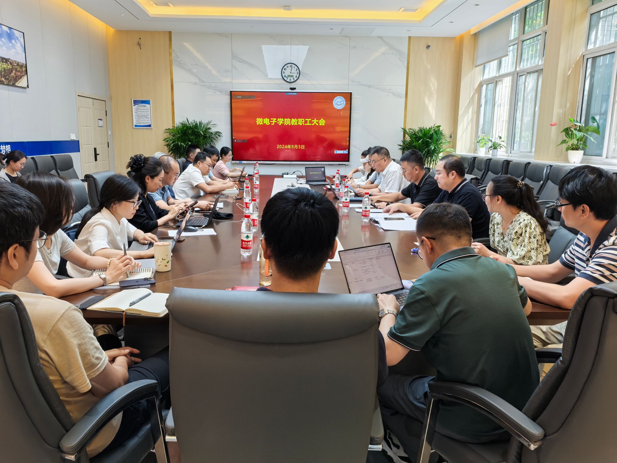 9月5日下午,微电子学院召开全院教职工大会,传达学习学校暑假务虚会暨新学期干部会精神,总结上半年学院成果,研究部署学院下半年重点工作。学院全体教职工参会,会议由院长马炳和主持。