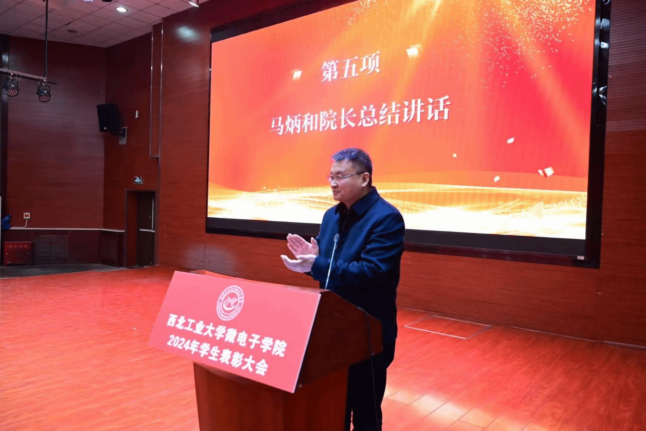 岁暮年终,硕果盈枝。为表彰先进、鼓舞英才,激励同学们见贤思齐、争做先进榜样,1月4日下午,微电子学院在教西D100召开“砥砺奋进敢争先,奋楫扬帆谱新篇”2024年学生表彰大会暨成长故事分享会。学院院长马炳和、党委书记杨妮花、党委副书记余鹏、院长助理关赫、教师代表、获奖学生代表以及全院学生参加本次大会。会议由党委副书记余鹏主持。