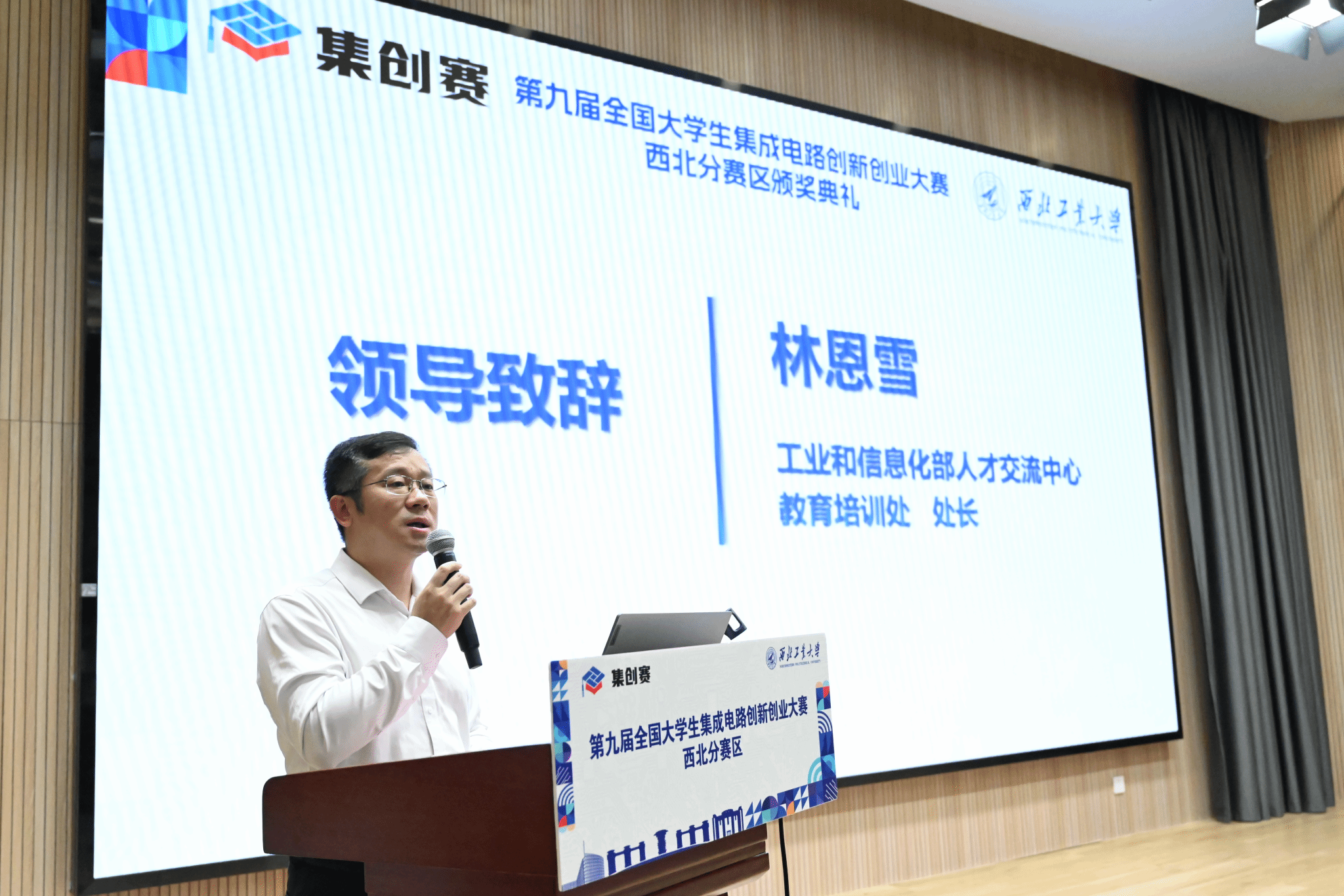 林恩雪在致辞中指出,大赛通过“企业出题、高校解题”的模式,将行业发展需求融入人才培养,有效提升学生工程素养、实践能力和团队协作精神,为集成电路产业高质量发展注入新动能,为国家高水平科技自立自强提供坚实的人才支撑和创新保障。