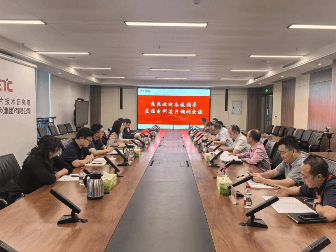 在电科芯片院,微电子学院一行参观了电科芯片展厅,了解芯片领域的核心成果。电科芯片院科技市场部副主任彭松、集团首席专家付晓君陪同调研,彭松主持了座谈会。