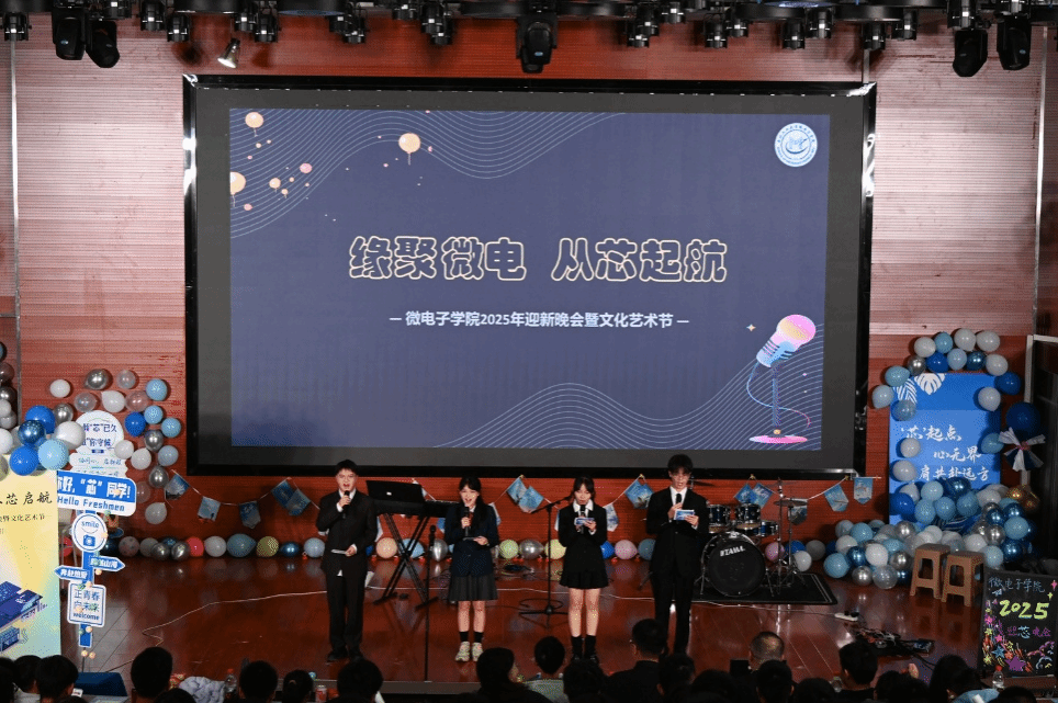 微电子学院 2025 年迎新晚会暨文化艺术节在长安校区温情启幕。这是我院首次独立承办的迎新晚会,所有节目均有本院学生参演。副院长阴玥、院党委副书记余鹏、班主任、辅导员与全体 2025 级本科生齐聚一堂。